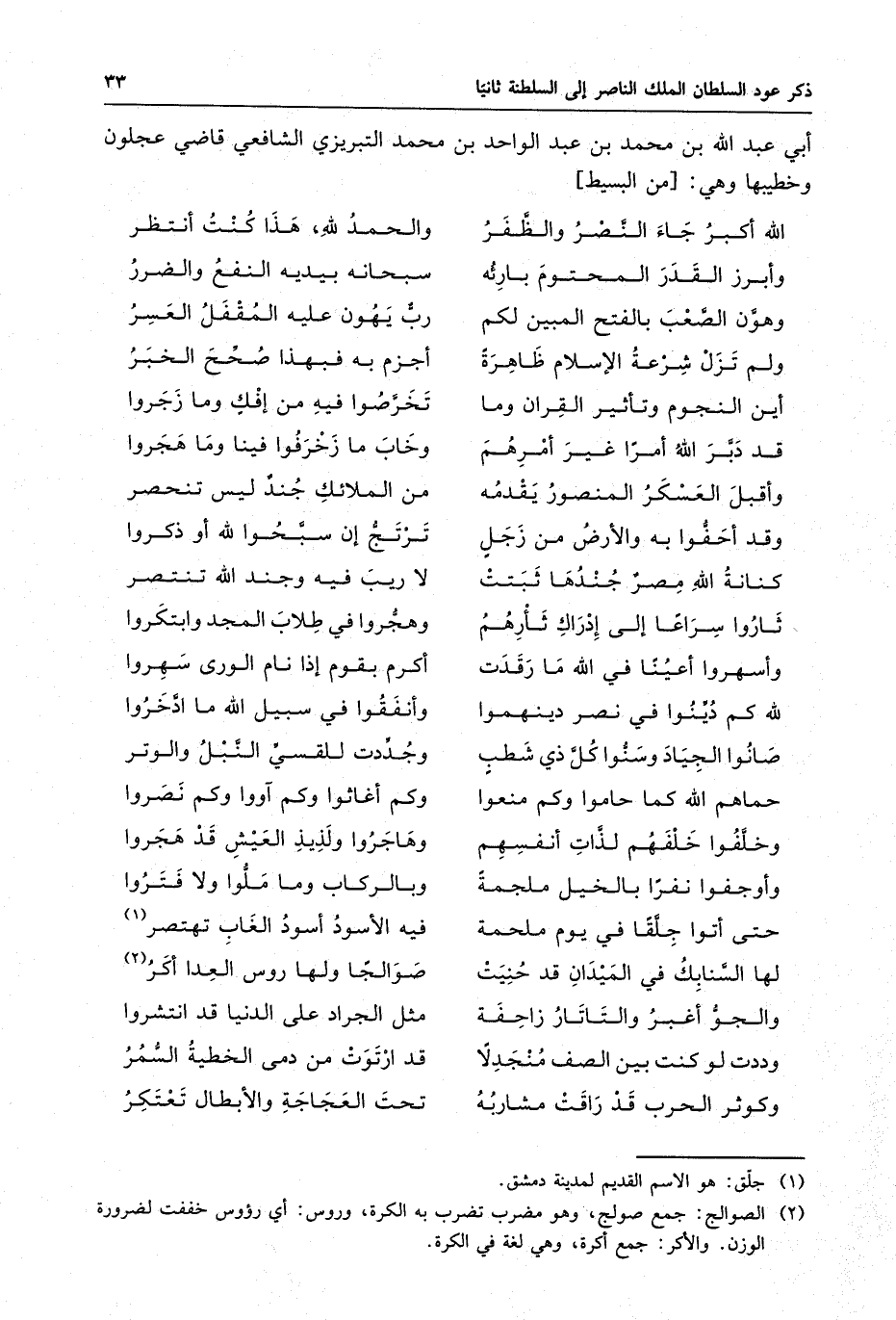 أبي عبد الله بن محمد بن عبد الواحد بن محمد التبريزي الشافعي قاضي عجلون