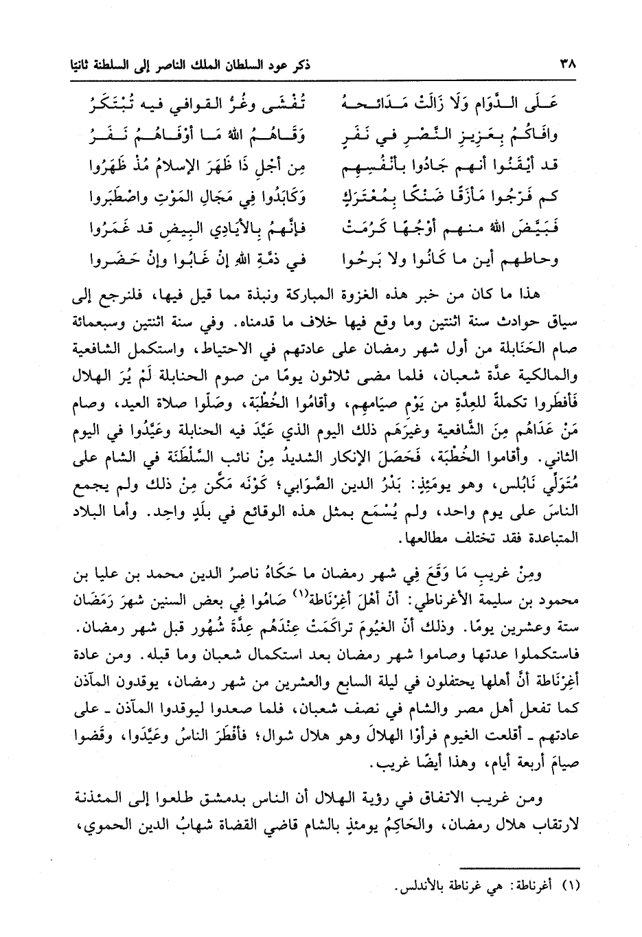 محمود بن سليمة الأغرناطي : أن أهل أغرناطة صاموا في بعض السنين شهر رمضان