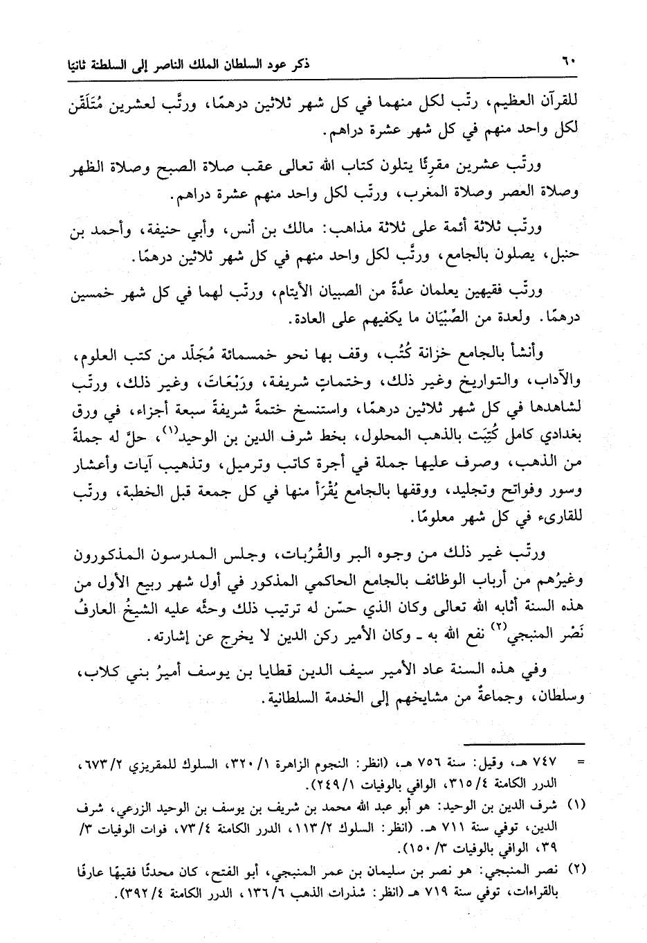 حنبل ، يصلون بالجامع ، ورتب لكل واحد منهم في كل شهر ثلاثين درهما .