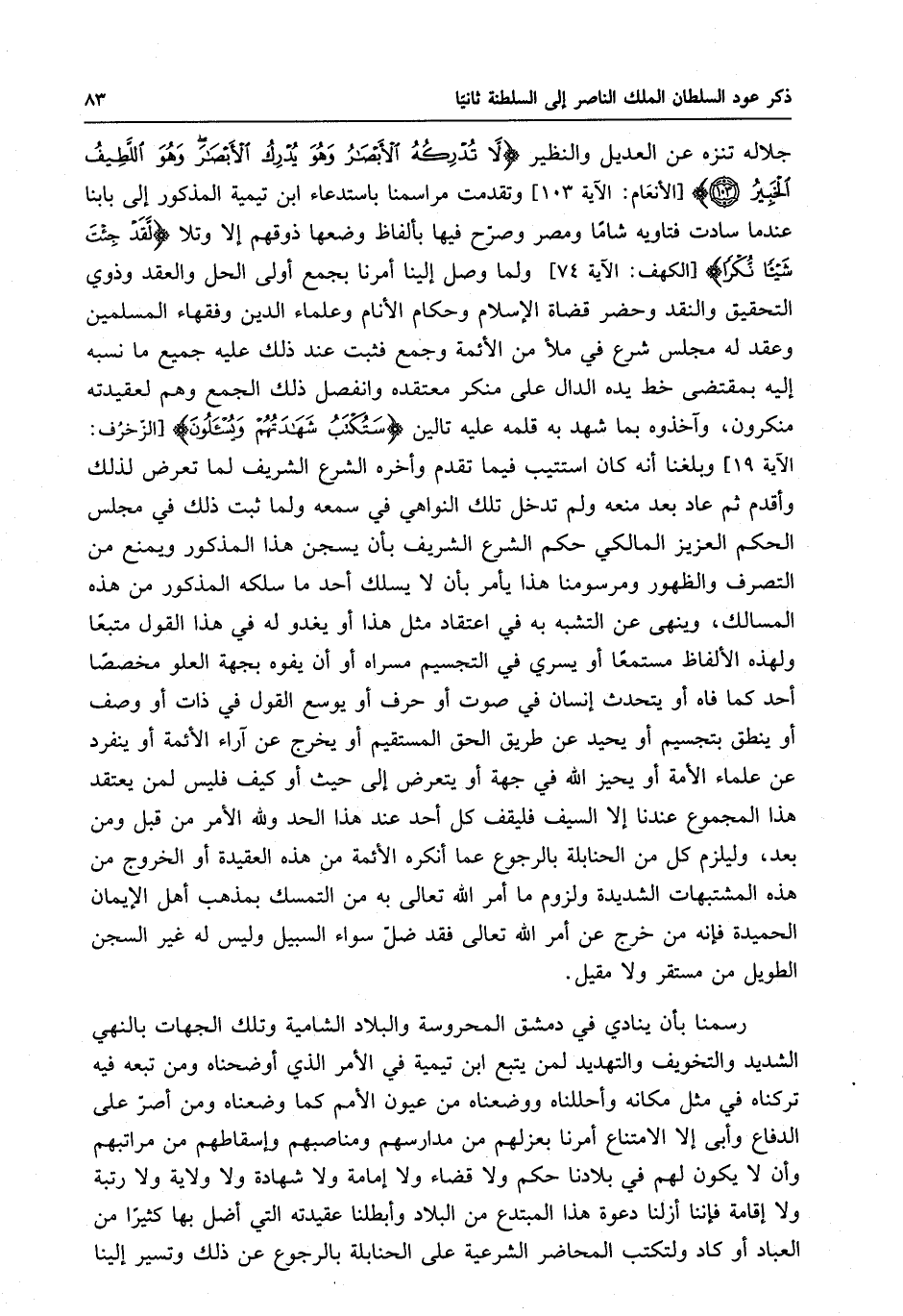 الخبير ( [ الأنعام : الآية 103 ] وتقدمت مراسمنا باستدعاء ابن تيمية المذكور إلى بابنا