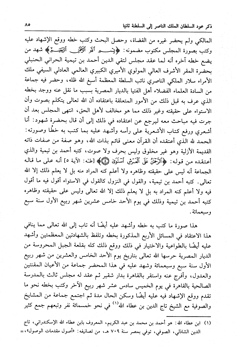 القديمة الأزلية وهو غير مخلوق وليس بحرف ولا صوت ، كتبه أحمد بن تيمية والذي