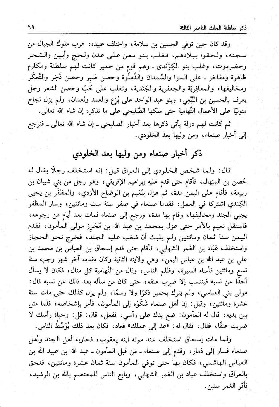 ذكر أخبار صنعاء ومن وليها بعد الخلودي