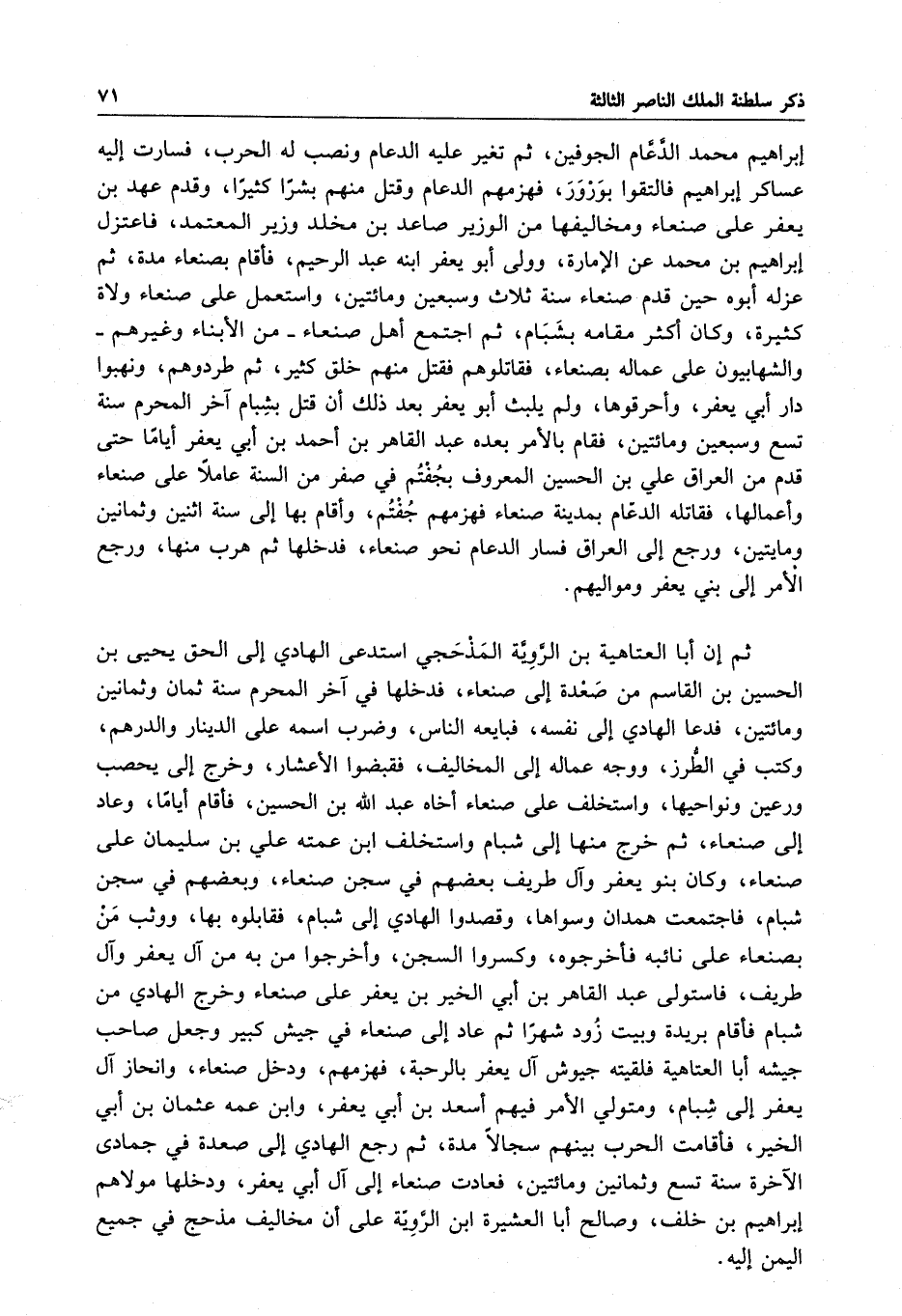 وأعمالها ، فقاتله الدعام بمدينة صنعاء فهزمهم جفتم ، وأقام بها إلى سنة اثنين وثمانين