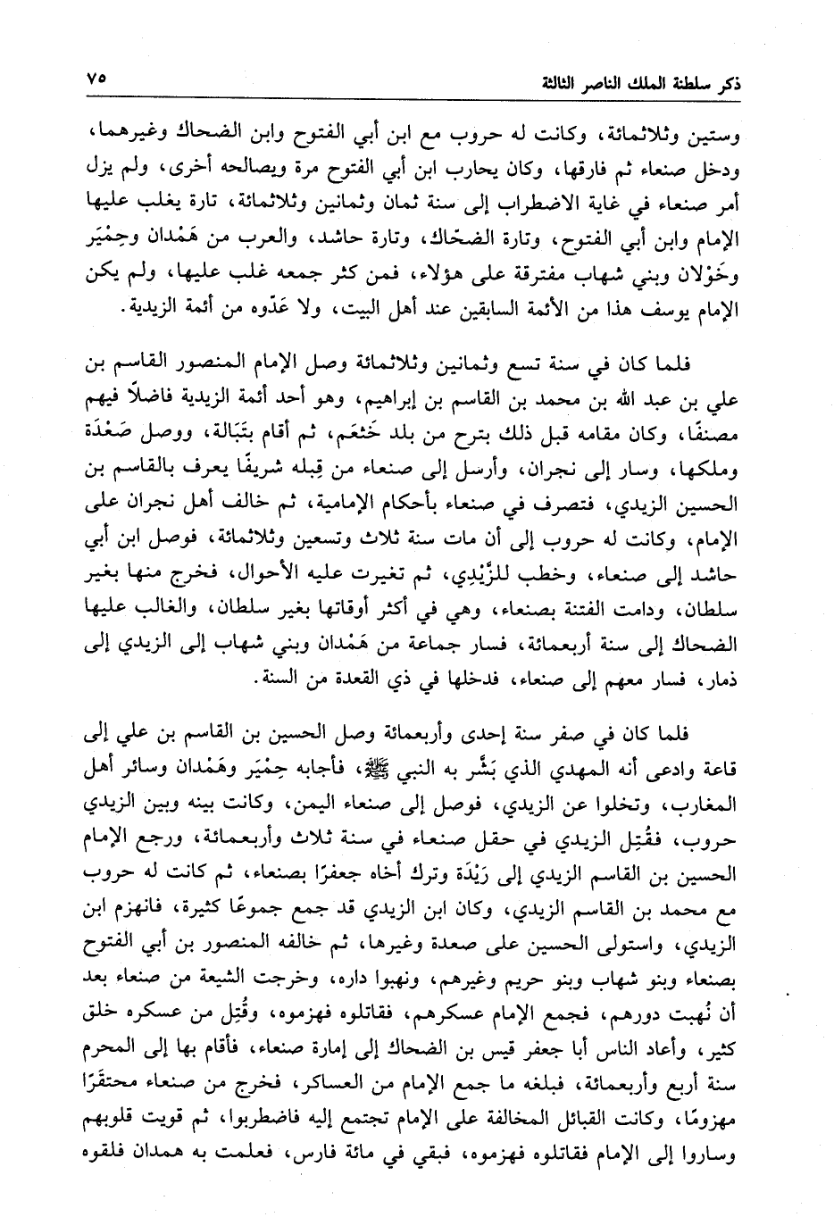 حروب ، فقتل الزيدي في حقل صنعاء في سنة ثلاث وأربعمائة ، ورجع الإمام