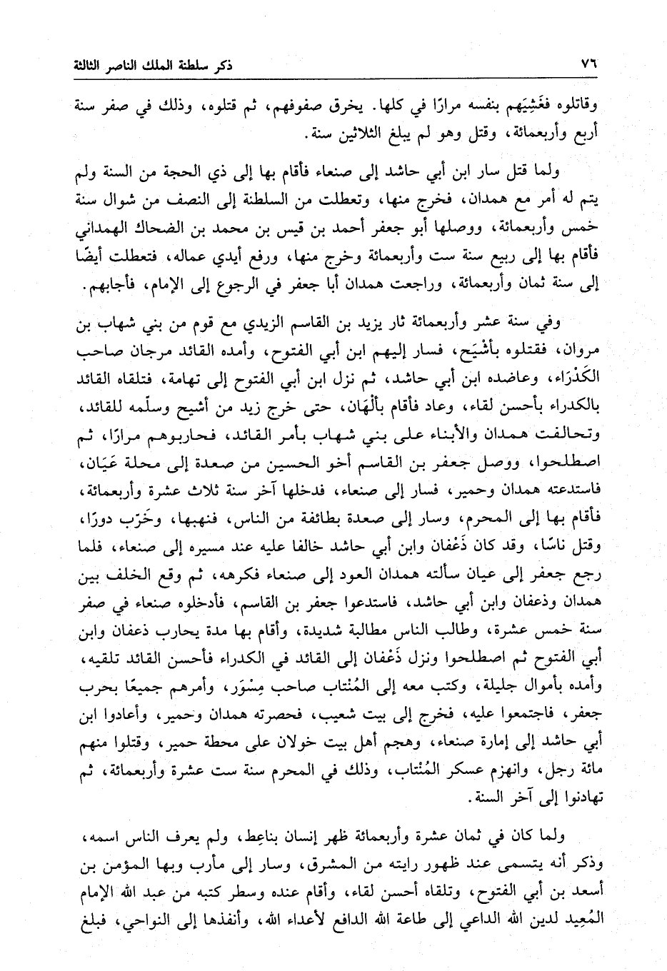 همدان وذعفان وابن أبي حاشد ، فاستدعوا جعفر بن القاسم ، فأدخلوه صنعاء في صفر