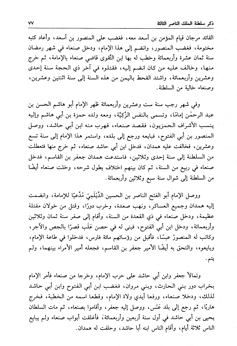 من السلطنة إلى سنة إحدى وثلاثين ، فاستدعت همدان جعفر بن القاسم ، فدخل