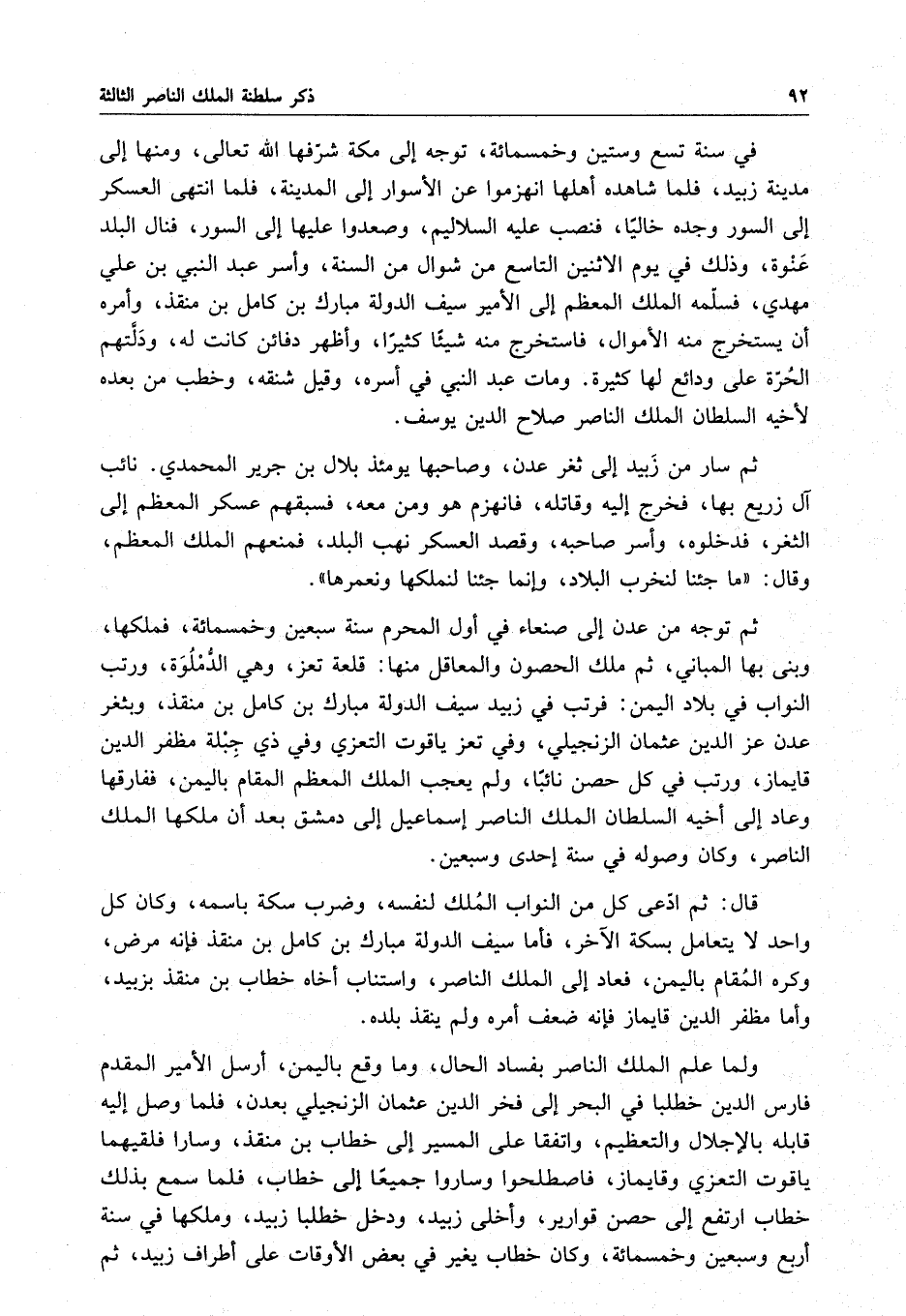 النواب في بلاد اليمن : فرتب في زبيد سيف الدولة مبارك بن كامل بن منقذ ، وبثغر