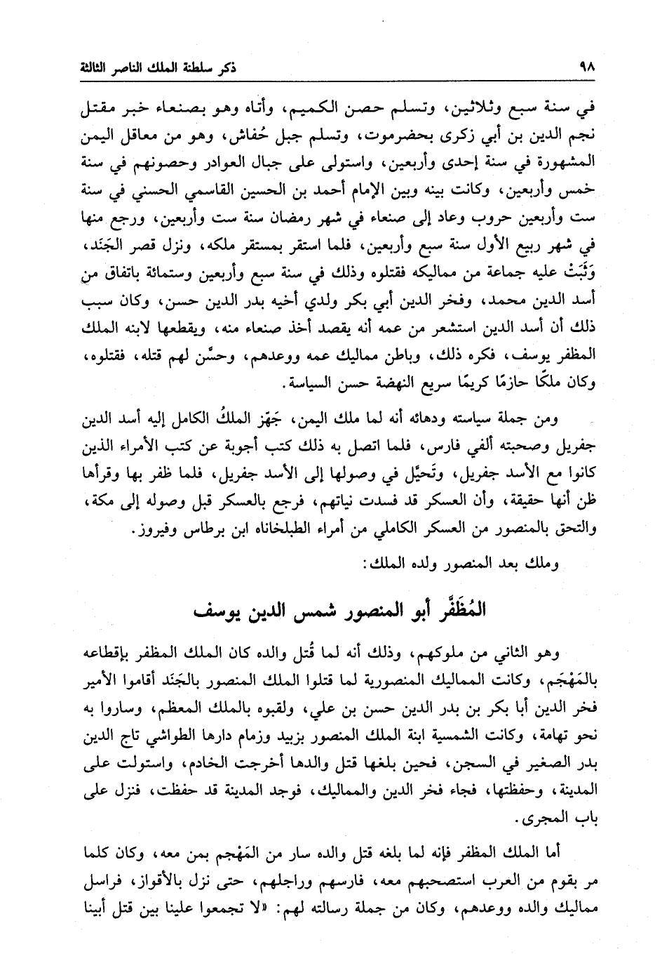 أما الملك المظفر فإنه لما بلغه قتل والده سار من المهجم بمن معه ، وكان كلما