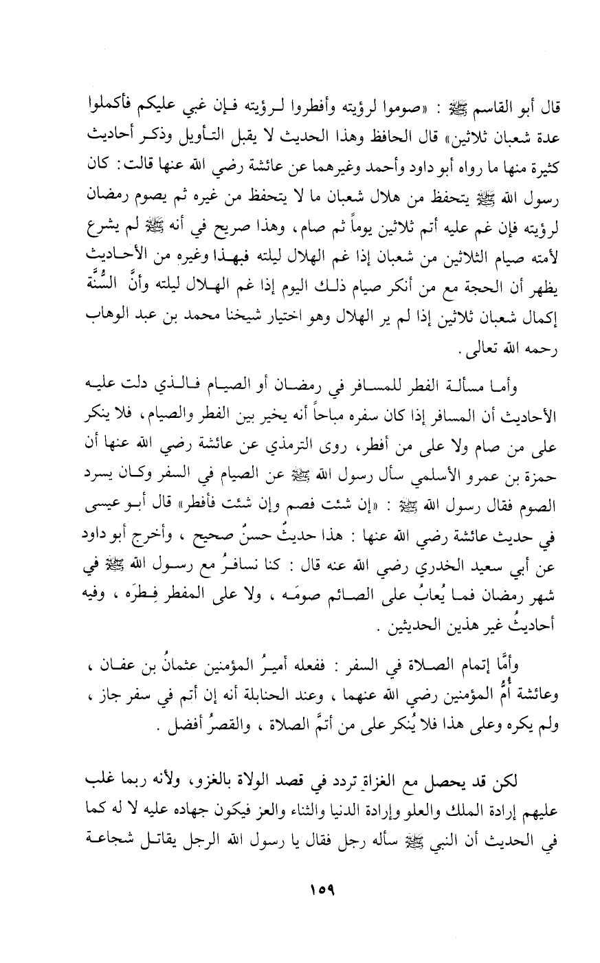قال أبو القاسم صلى الله عليه وسلم: "صوموا لرؤيته وأفطروا لرؤيته فإن غبي عليكم فأكملوا عدة شعبان ثلاثين". قال الحافظ: وهذا الحديث لا يقبل التأويل وذكر أحاديث كثيرة منها ما رواه أبو داود وأحمد وغيرهما عن عائشة رصي الله عنها قالت كان رسول الله صلى الله عليه وسلم يتحفظ من هلال شعبان ما لا يتحفظ من غيره ثم يصوم من رمضان لرؤيته فإن غم عليه أتم ثلاثين يوما ثم صام ليلته وهذا صريح في أنه صلى الله عليه وسلم لم يشرع لأمة صيام الثلاثين من شعبان إذا غم الهلال ليلته فبهذا وغيره من الأحاديث يظهر أن الحجة مع من أنكر صيام ذلك اليوم إذا غم الهلال ليلته وأن السنة إكمال شعبان ثلاثين إذا لم ير الهلال وهو اختيار شيخنا محمد بن عبد الوهاب رحمه الله: تعالى: