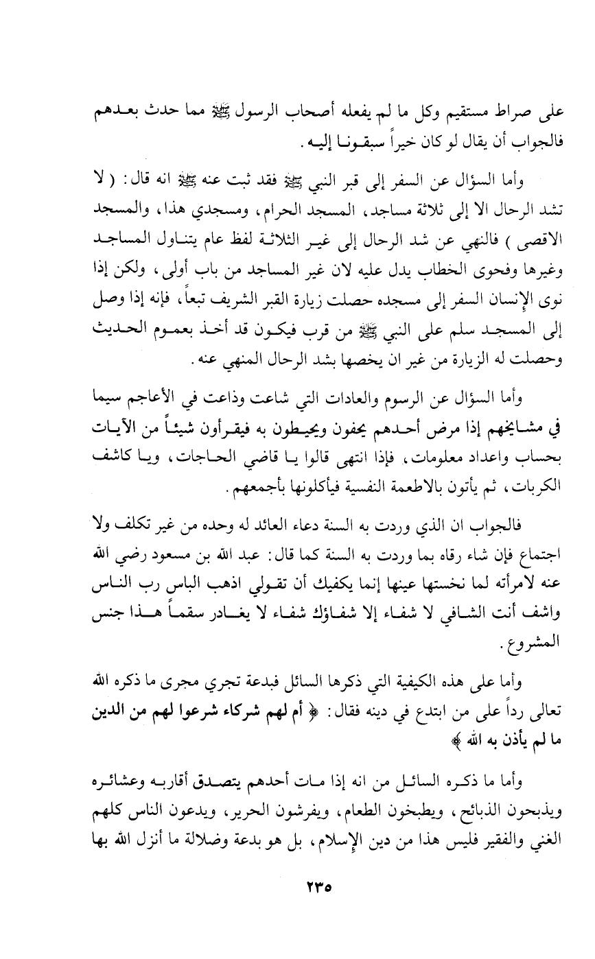 على صراط مستقيم وكل ما لم يفعله أصحاب الرسول صلى الله عليه وسلم مما حدث بعدهم فالجواب أن يقال لو كان خيرا سبقونا إليه.