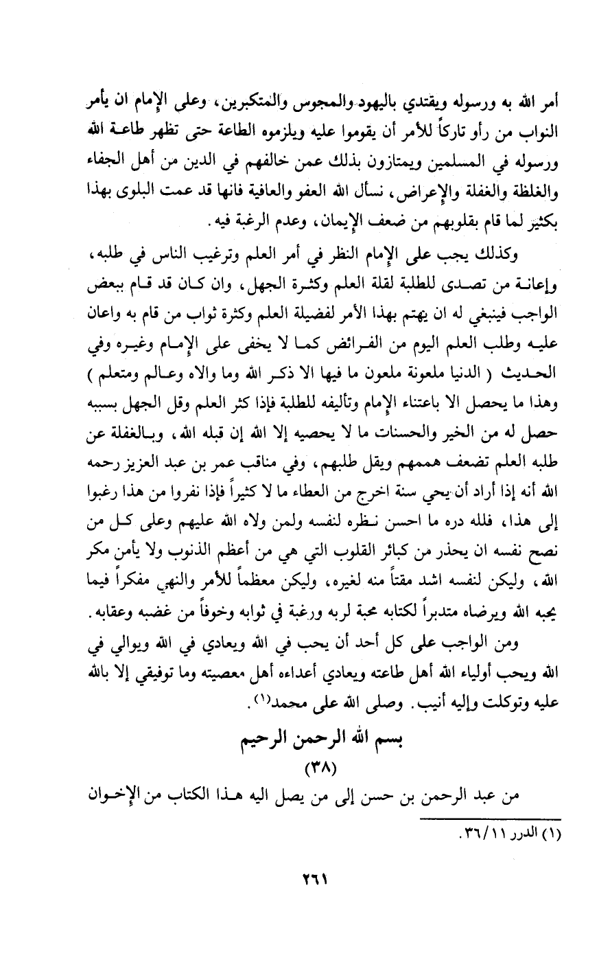 من عبد الرحمن بن حسن إلى من يصل إليه هذا الكتاب من الإخوان