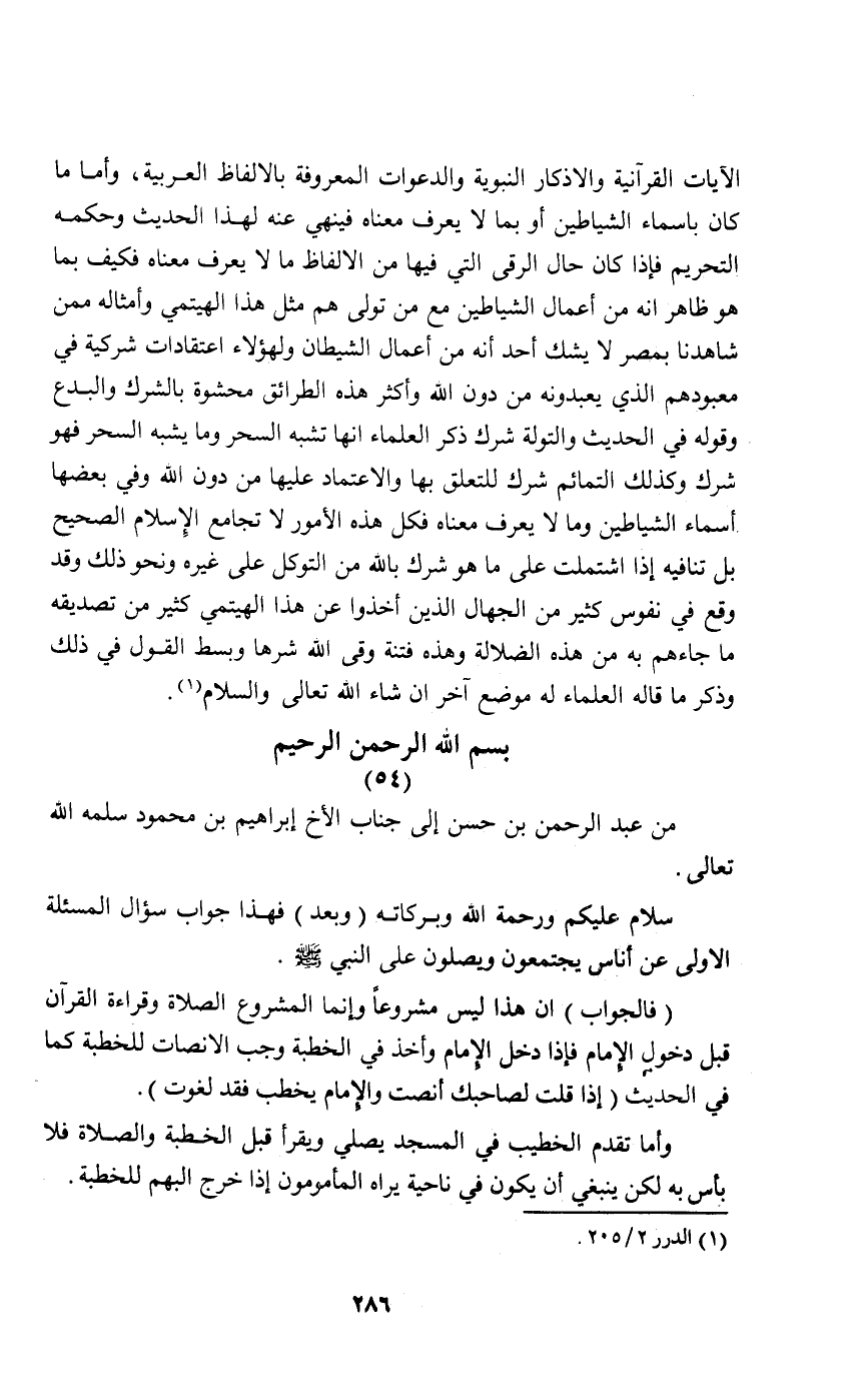 من عبد الرحمن بن حسن إلى جناب الأخ إبراهيم بن محمود سلمه الله تعالى.