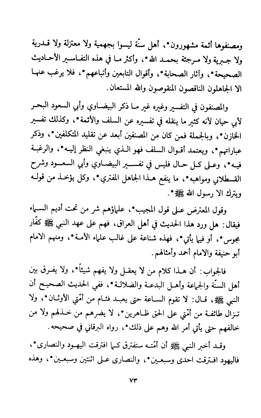 ومصنفوها أئمة مشهورون أهل السنة ليسوا بجهمية ولا معتزلة ولا قدرية ولا جبرية ولا مرجئة بحمد الله وأكثر ما في هذه التفاسير الأحاديث الصحيحة وآثار الصحابة وأقوال التابعين وأتباعهم فلا يرغب عنها إلا الجاهلون الناقصون المنقوصون والله المستعان.