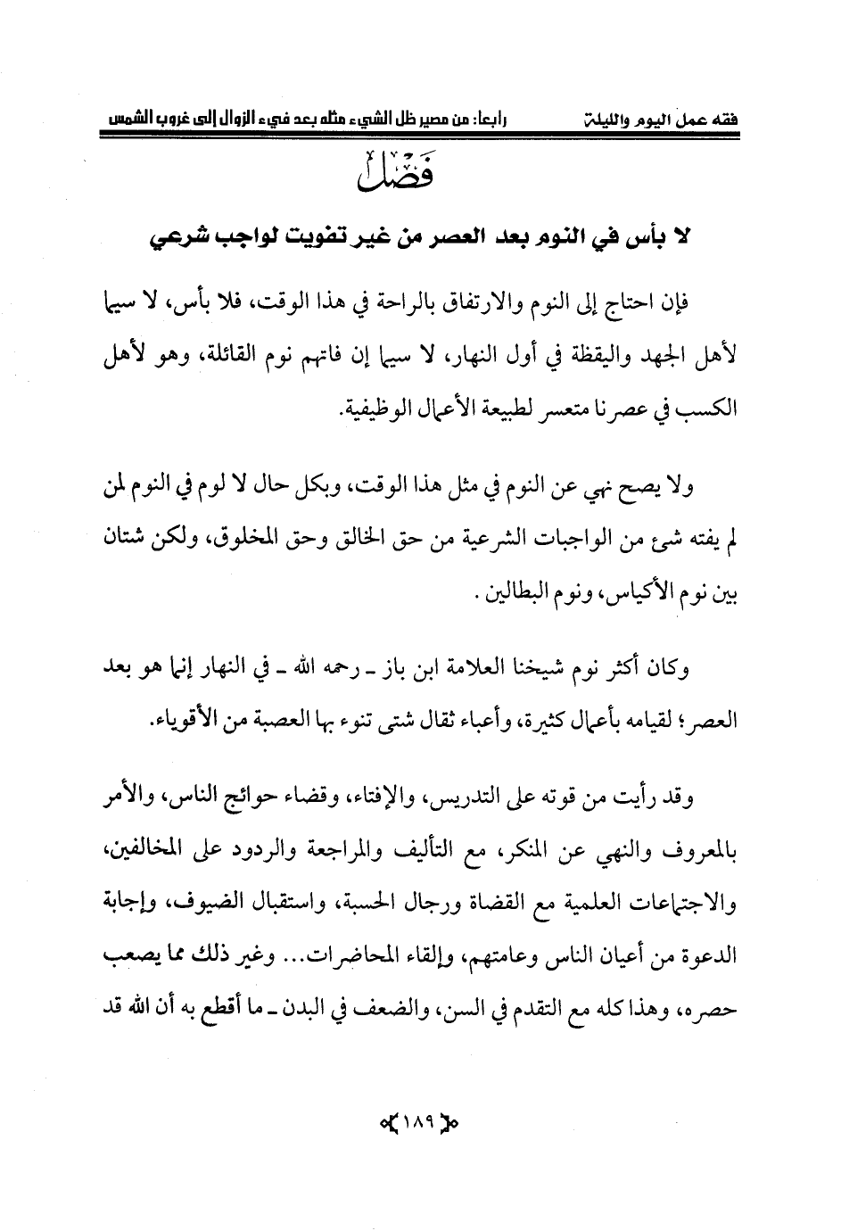 لا بأس في النوم بعد العصر من غير تفويت لواجب شرعي