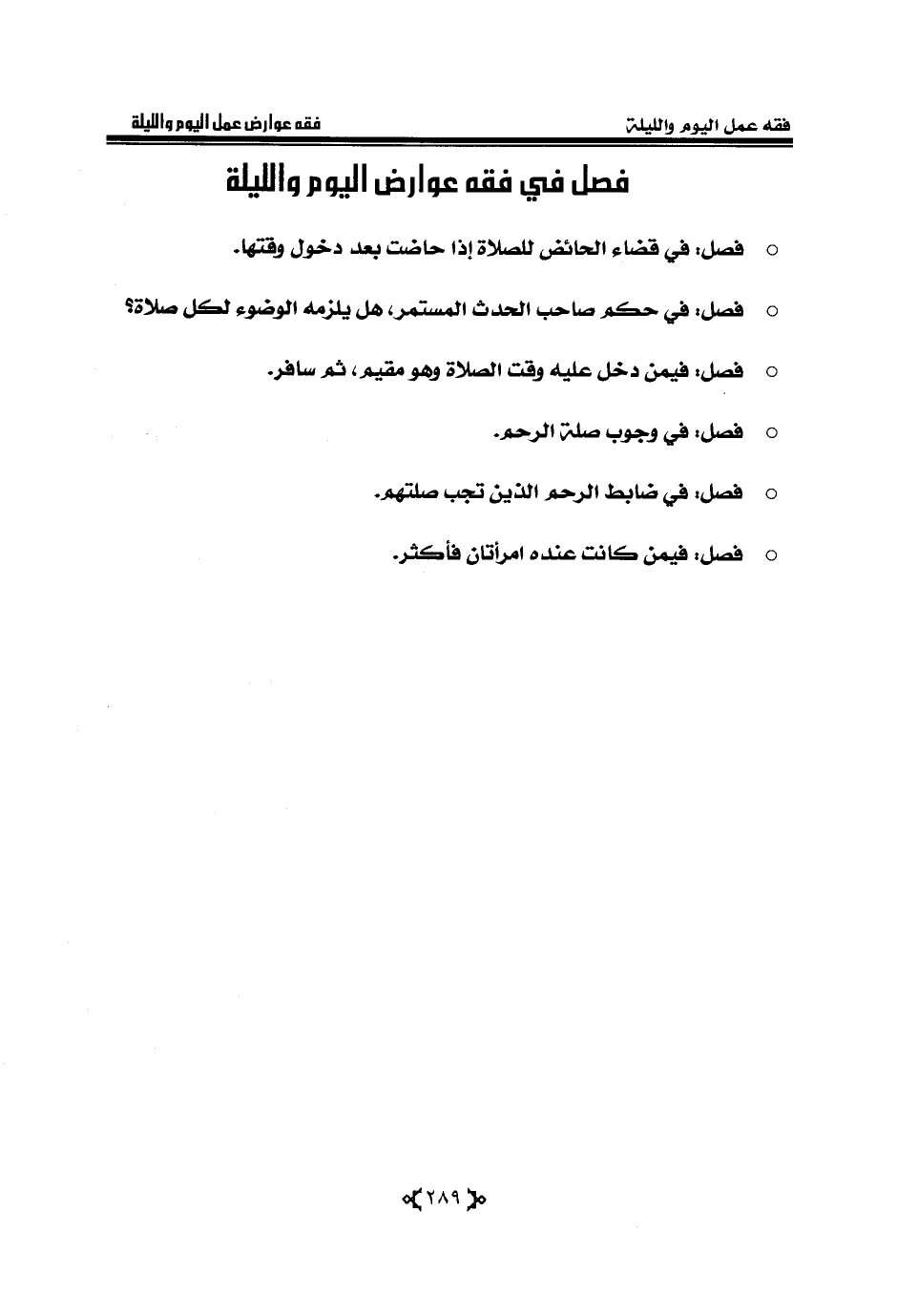 فصل في فقه عوارض اليوم والليلة