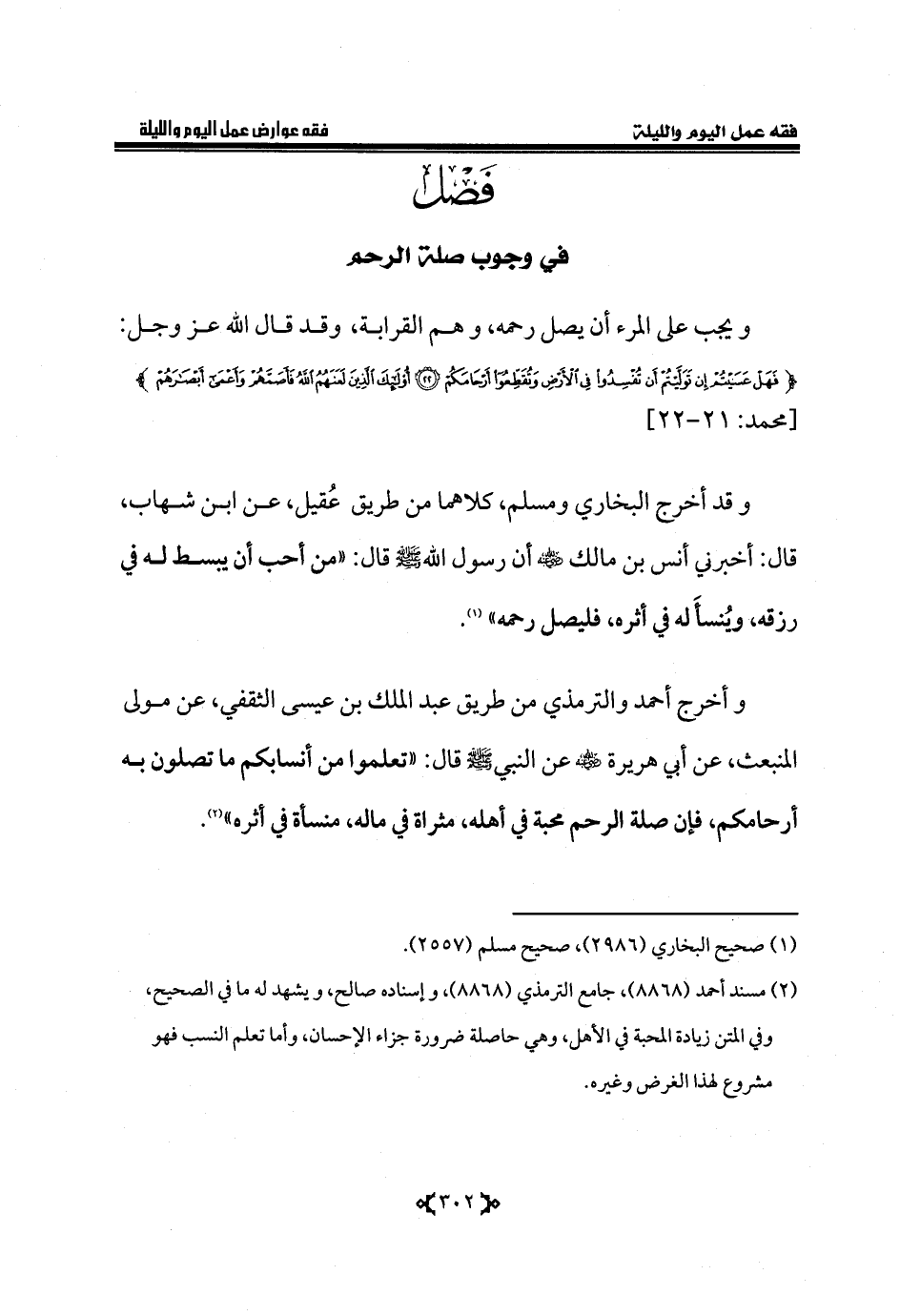 (¬2) مسند أحمد (8868)، جامع الترمذي (8868)، وإسناده صالح، ويشهد له ما في الصحيح، وفي المتن زيادة المحبة في الأهل، وهي حاصلة ضرورة جزاء الإحسان، وأما تعلم النسب فهو مشروع لهذا الغرض وغيره.