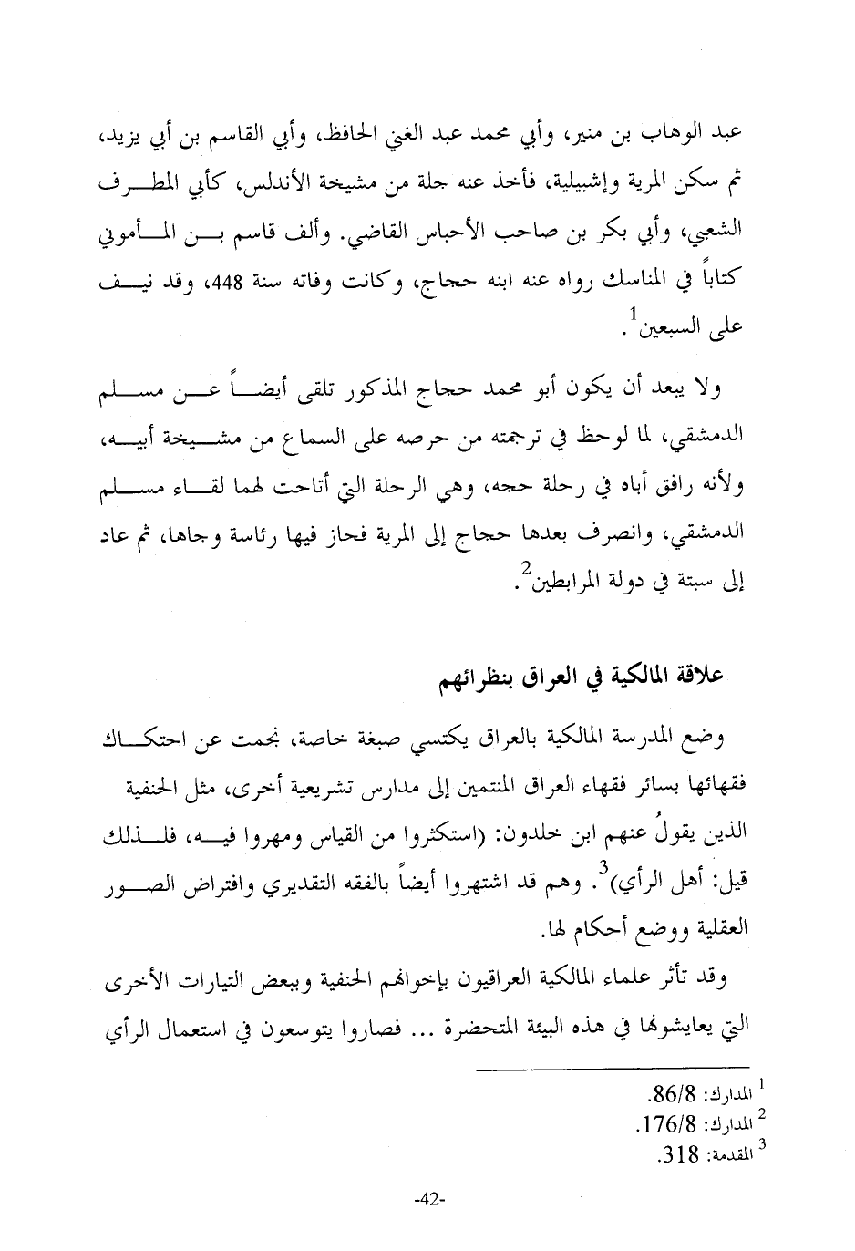 وقد تأثر علماء المالكية العراقيون بإخوانهم الحنفية وببعض التيارات الأخرى التي يعايشونها في هذه البيئة المتحضرة ... فصاروا يتوسعون في استعمال الرأي