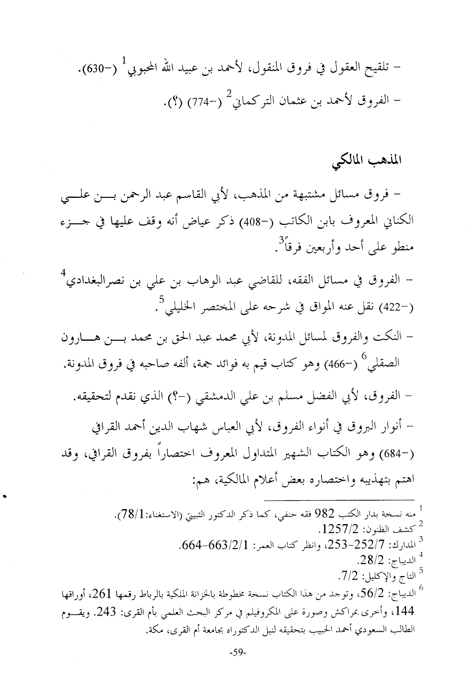 (٦) الديباج: ٢/ ٥٦، وتوجد من هذا الكتاب نسخة مخطوطة بالخزانة الملكية بالرباط رقمها ٢٦١، أوراقها ١٤٤، وأخرى بمراكش وصورة على المكروفيلم في مركز البحث العلمي بأم القرى: ٢٤٣. ويقوم الطالب السعودي أحمد الحبيب بتحقيقه لنيل الدكتوراه بجامعة أم القرى، مكة.
