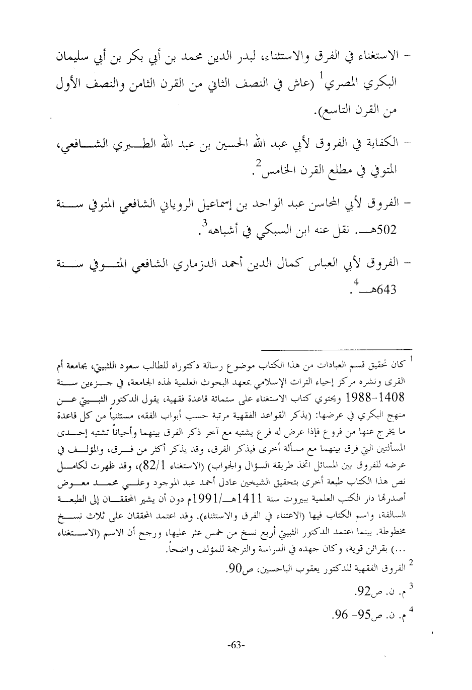 - الكفاية في الفروق لأبي عبد الله الحسين بن عبد الله الطبري الشافعي، المتوفي في مطلع القرن الخامس (٢).