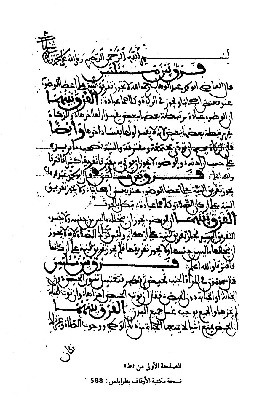 نسخة مكتبة الأوقاف بطرابلس: ٥٨٨