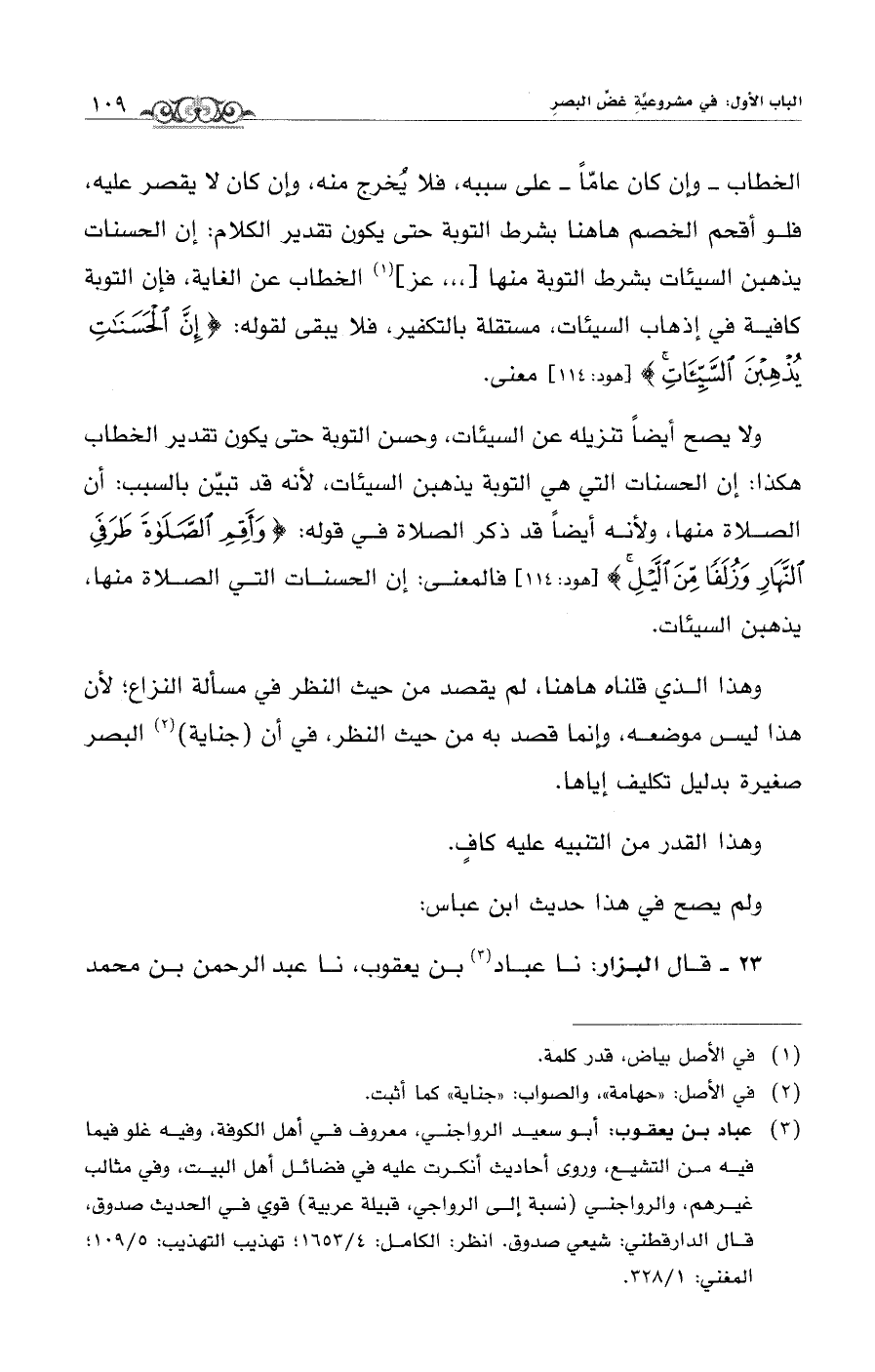 (¬3) عباد بن يعقوب: أبو سعيد الرواجني، معروف في أهل الكوفة، وفيه غلو فيما فيه من التشيع، وروى أحاديث أنكرت عليه في فضائل أهل البيت، وفي مثالب غيرهم، والرواجني (نسبة إلى الرواجي، قبيلة عربية) قوي في الحديث صدوق، قال الدارقطني: شيعي صدوق. انظر: الكامل: 4/ 1653؛ تهذيب التهذيب: 5/ 109؛ المغني: 1/ 328.