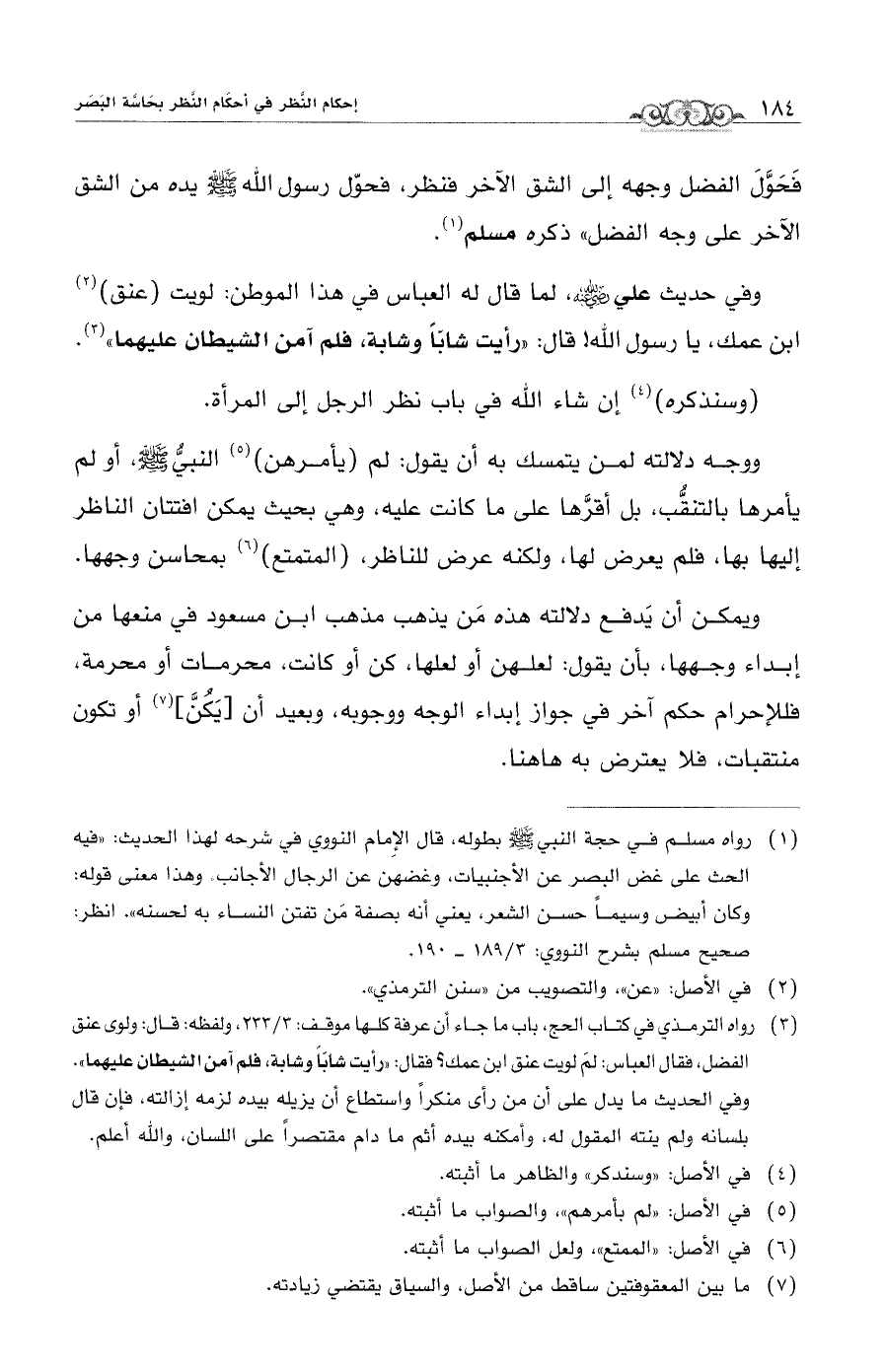 (¬3) رواه الترمذي في كتاب الحج، باب ما جاء أن عرفة كلها موقف: 3/ 233، ولفظه: قال: ولوى عنق الفضل، فقال العباس: لمَ لويت عنق ابن عمك؟ فقال: "رأيت شابًّا وشابة، فلم آمن الشيطان عليهما".