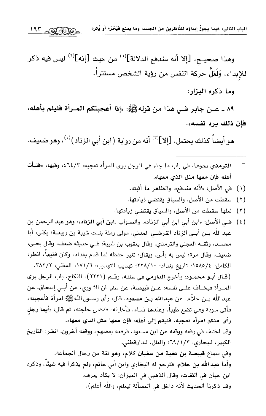 89 - عن جابر في هذا من قوله - صلى الله عليه وسلم -: "إذا أعجبتكم المرأة فليلم بأهله، فإن ذلك يرد نفسه".