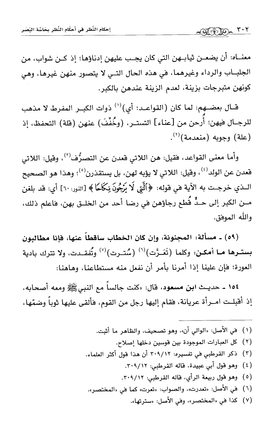 وأما معنى القواعد، فقيل: هن اللاتي قعدن عن التصرُّف (¬3)، وقيل: اللاتي قعدن عن الولد (¬4)، وقيل: اللاتي لا يؤبه لهن، بل يستقذرن (¬5)، وهذا هو الصحيح الذي خرجت به الآية في قوله: {اللَّاتِي لَا يَرْجُونَ نِكَاحًا} [النور: 60] أي: قد بلغن من الكبر إلى حدٍّ قُطع رجاؤهن في رضا أحد من الخلق بهن، فاعلم ذلك، والله الموفق.