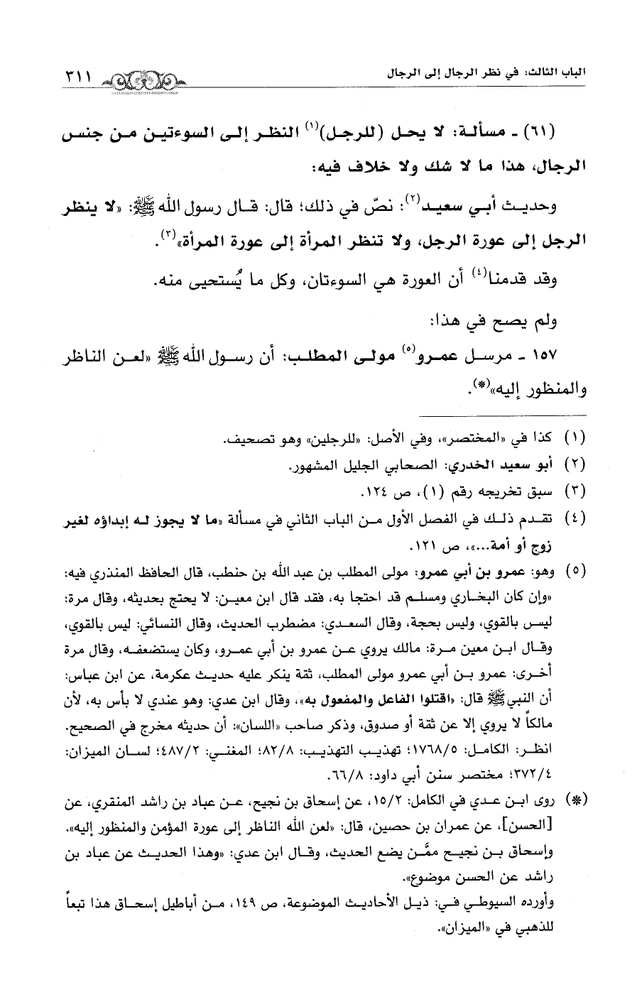 157 - مرسل عمرو (¬5) مولى المطلب: أن رسول الله - صلى الله عليه وسلم - "لعن الناظر والمنظور إليه" (*).