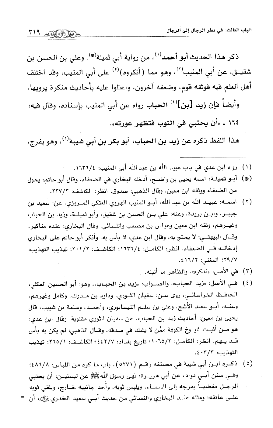 (*) أبو ثميلة: اسمه يحيى بن واضح، أدخله البخاري في الضعفاء، وقال أبو حاتم: يحول من الضعفاء ووثقه ابن معين، وقال الذهبي: صدوق. انظر: الكاشف: 3/ 237.
