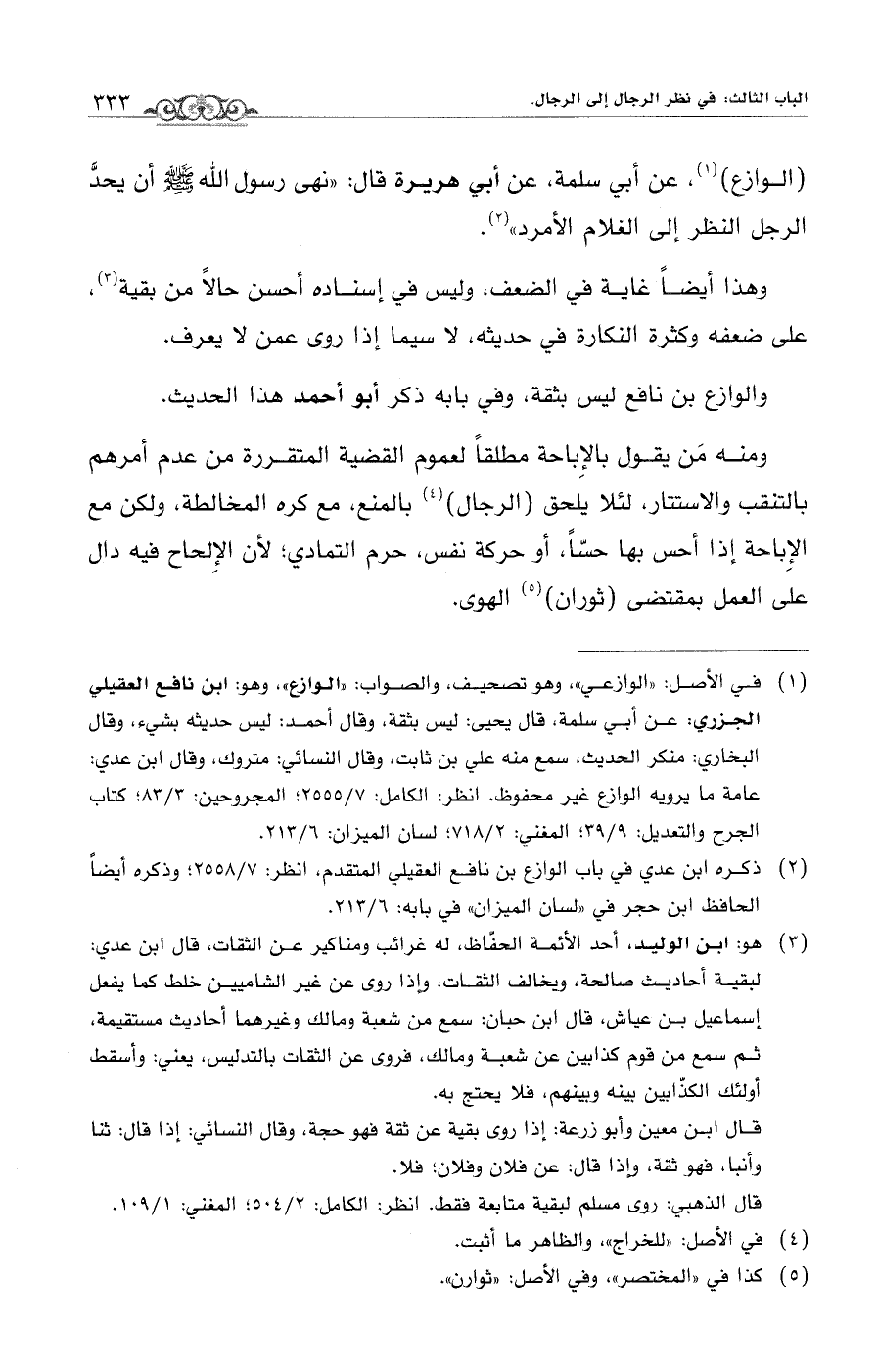 (الوازع) (¬1)، عن أبي سلمة، عن أبي هريرة قال: "نهى رسول الله - صلى الله عليه وسلم - أن يحدَّ الرجل النظر إلى الغلام الأمرد" (¬2).