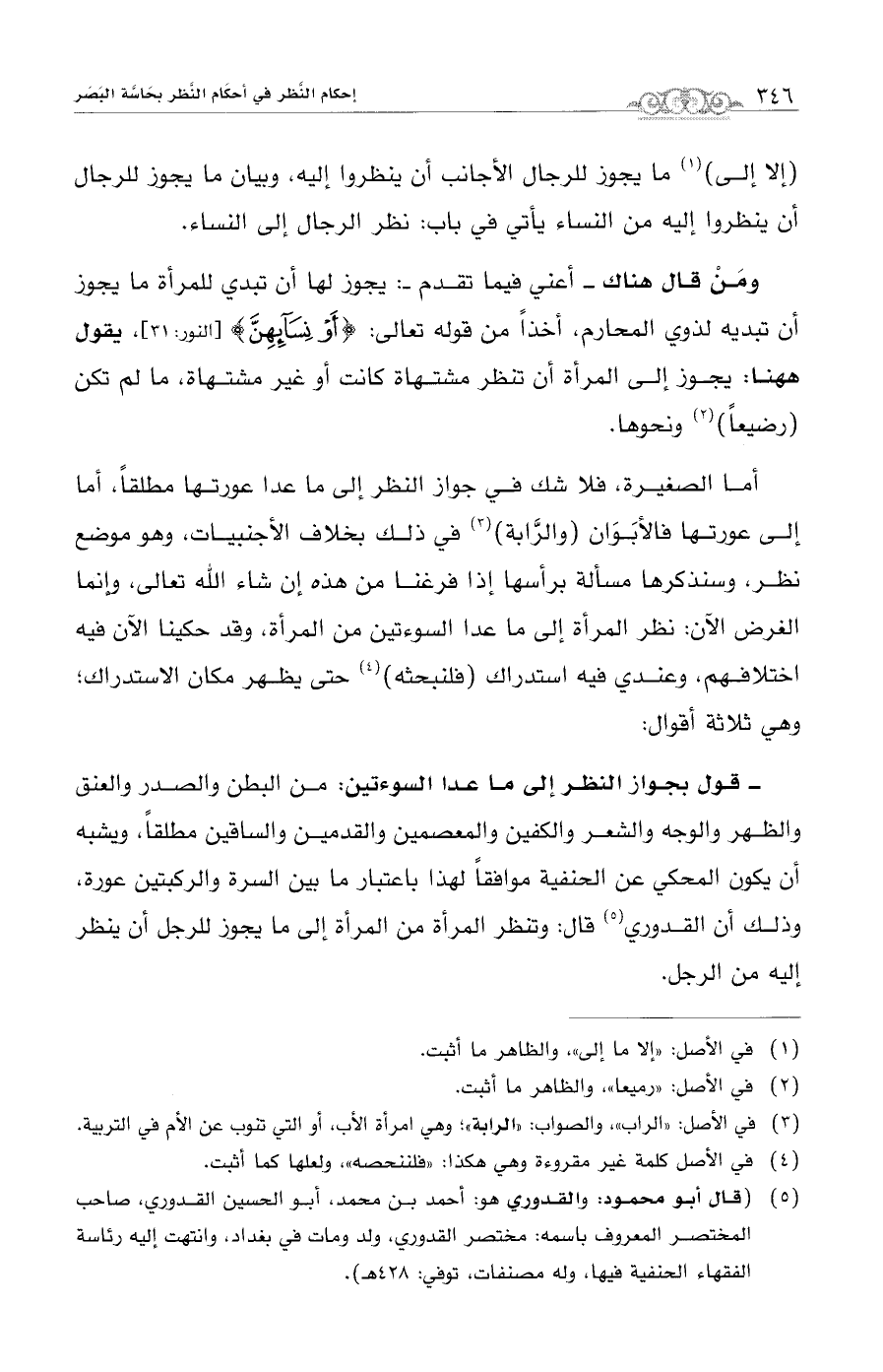 (¬5) قال أبو محمود: والقدوري هو: أحمد بن محمد، أبو الحسين القدوري، صاحب المختصر المعروف باسمه: مختصر القدوري، ولد ومات في بغداد، وانتهت إليه رئاسة الفقهاء الحنفية فيها، وله مصنفات، توفي: 428 هـ).