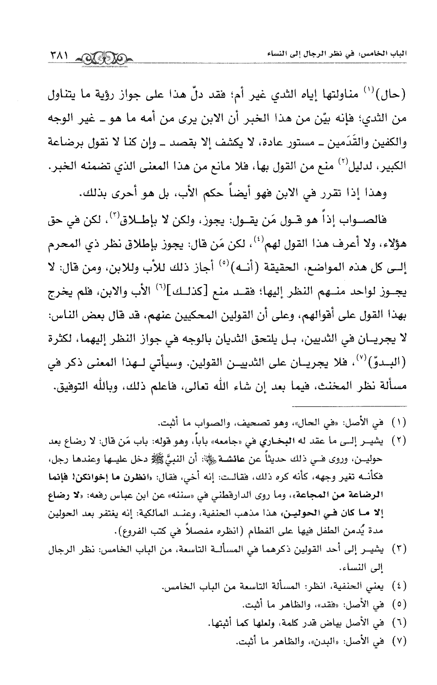 (¬3) يشير إلى أحد القولين ذكرهما في المسألة التاسعة, من الباب الخامس: نظرالرجال إلى النساء.