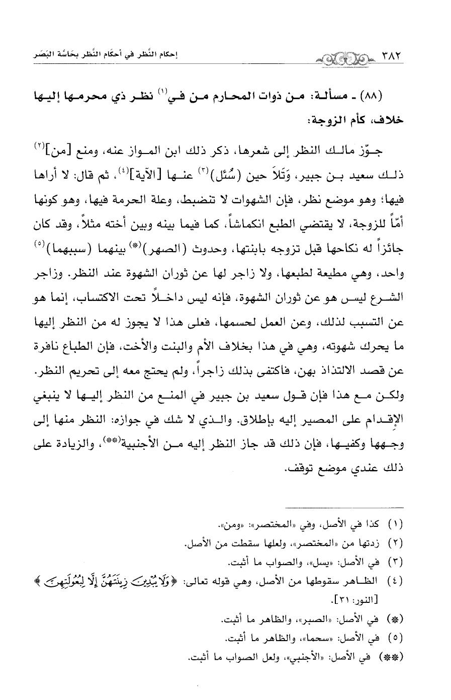 (¬4) الظاهر سقوطها من الأصل، وهي قوله تعالى: {وَلَا يُبْدِينَ زِينَتَهُنَّ إِلَّا لِبُعُولَتِهِنَّ} [النور: 31].