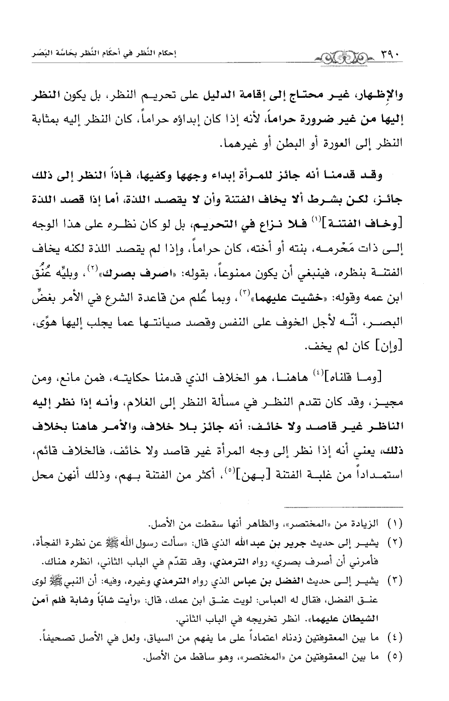 (¬3) يشير إلى حديث الفضل بن عباس الذي رواه الترمذي وغيره، وفيه: أن النبي - صلى الله عليه وسلم - لوى عنق الفضل، فقال له العباس: لويت عنق ابن عمك، قال: "رأيت شابّاً وشابة فلم آمن الشيطان عليهما". انظر تخريجه في الباب الثاني.