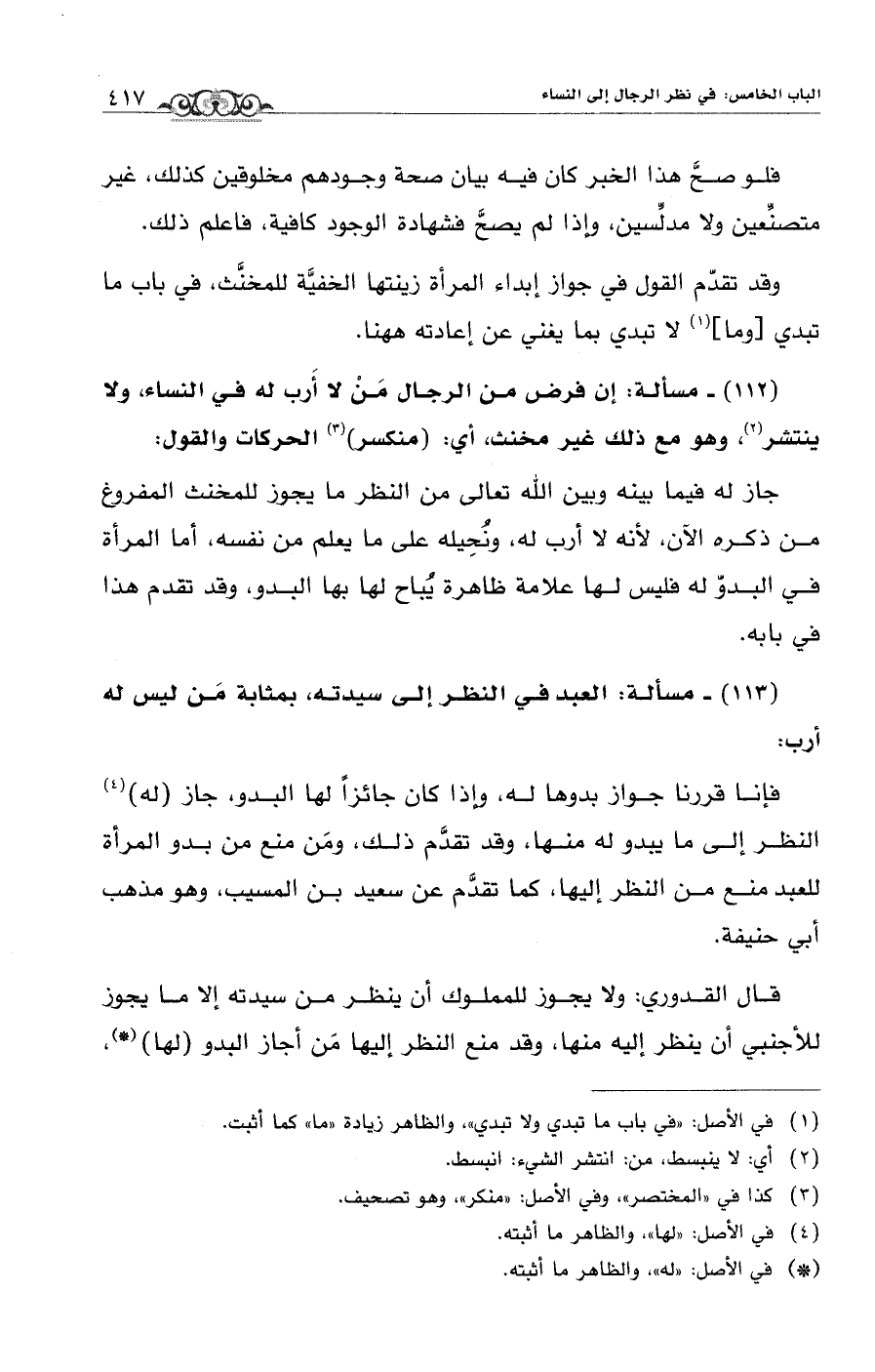 (113) - مسألة: العبدفي النظر إلى سيدته، بمثابة مَن ليس له أرب: