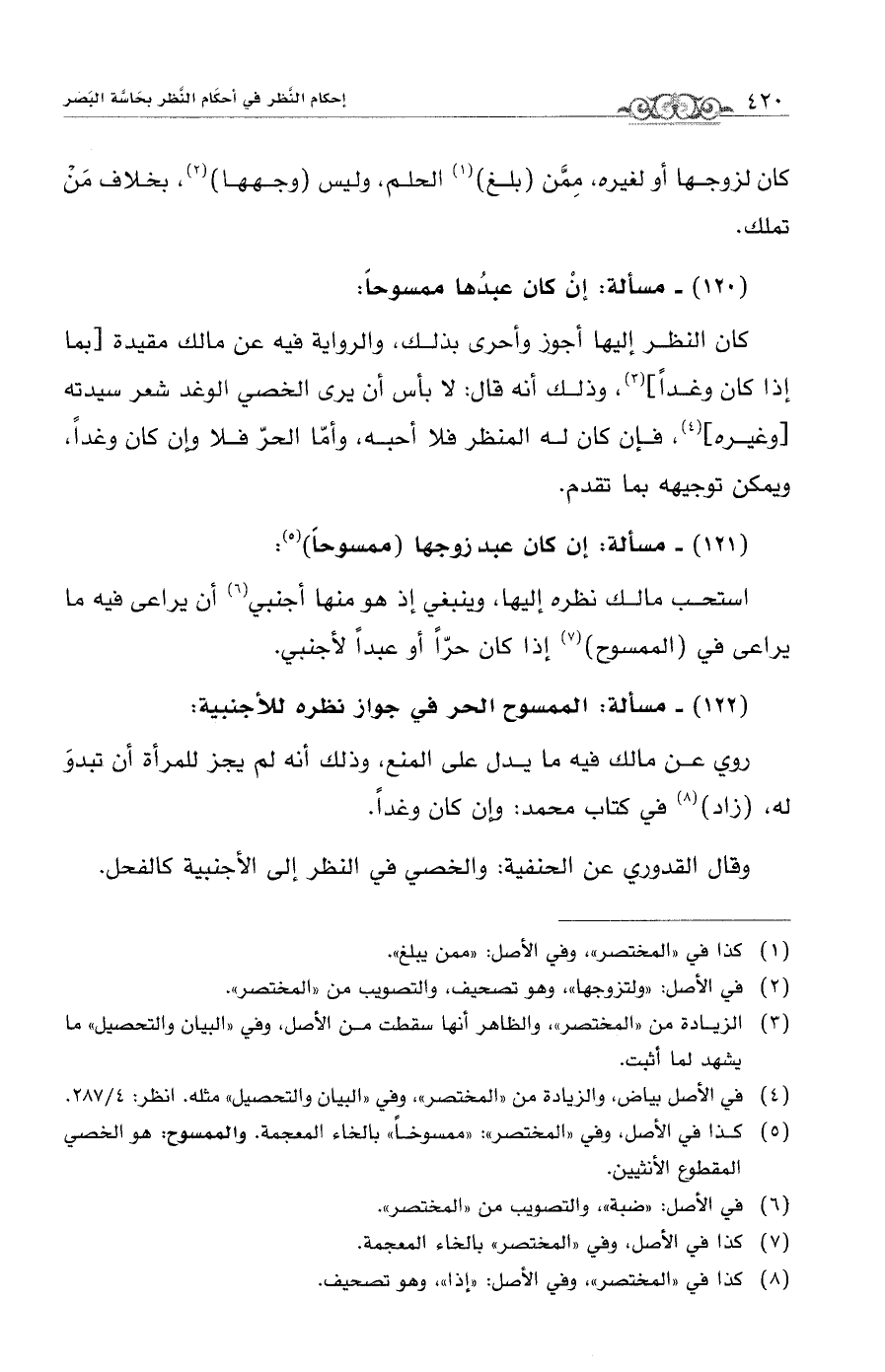 (¬5) كذا في الأصل، وفى "المختصر": "ممسوخاً" بالخاء المعجمة. والممسوح: هو الخصي المقطوع الأنثيين.