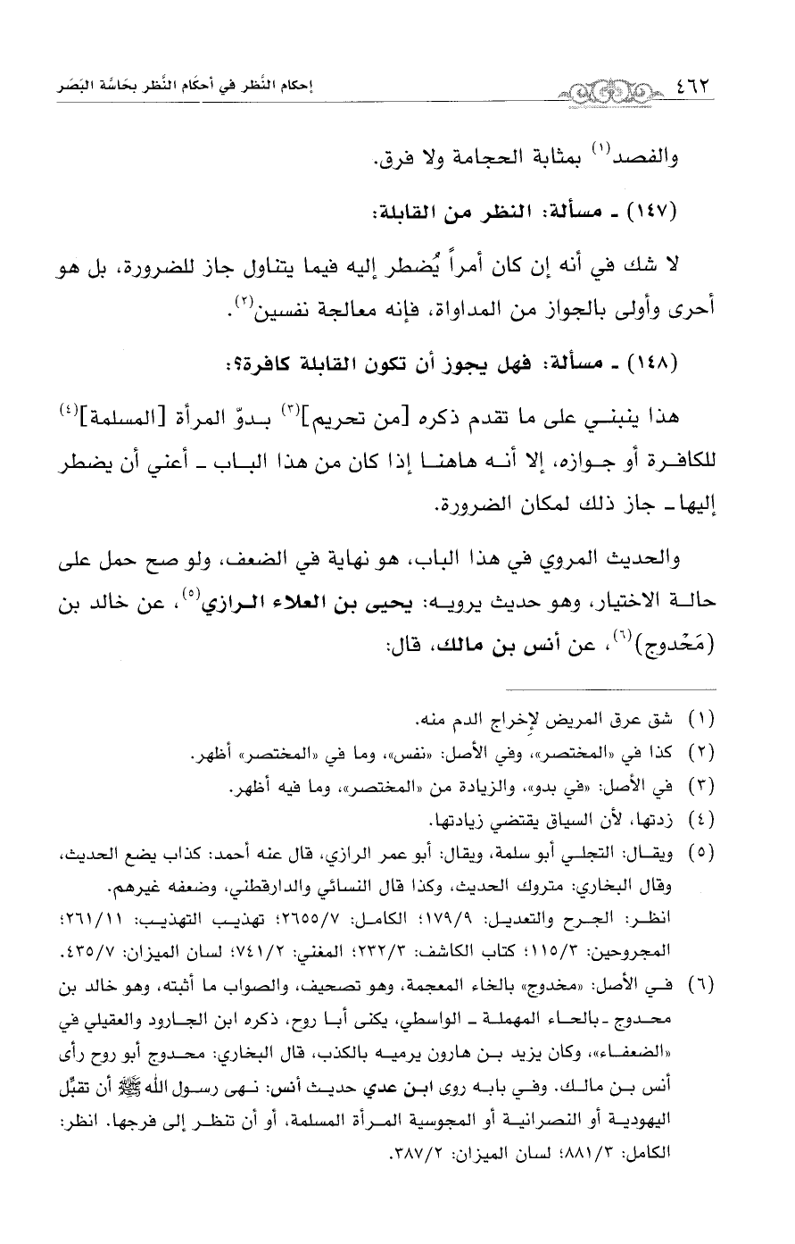 والحديث المروي في هذا الباب، هو نهاية في الضعف، ولو صح حمل على حالة الاختيار، وهو حديث يرويه: يحيى بن العلاء الرازي (¬5)، عن خالد بن (مَخدوج) (¬6)، عن أنس بن مالك، قال: