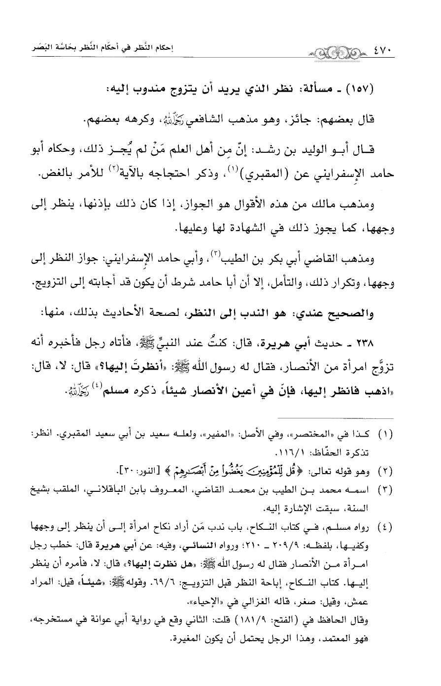(157) - مسألة: نظر الذي يريد أن يتزوج مندوب إليه: