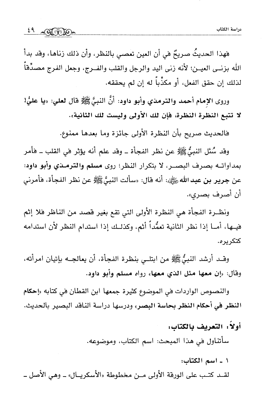 والنصوص الواردات في الموضوع كثيرة جمعها ابن القطان في كتابه "إحكام النظر في أحكام النظر بحاسة البصر" ودرسها دراسة الناقد البصير بالحديث.
