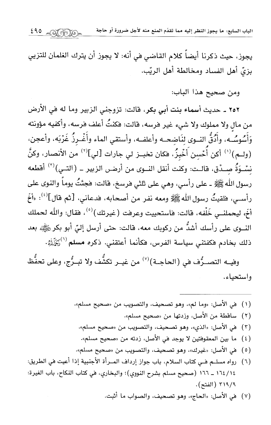(¬6) رواه مسلم في كتاب السلام، باب جواز إرداف المرأة الأجنبية إذا أعيت في الطريق: 164/ 14 - 166 (صحيح مسلم بشرح النووي)؛ والبخاري، في كتاب النكاح، باب الغيرة: 9/ 319 (الفتح).