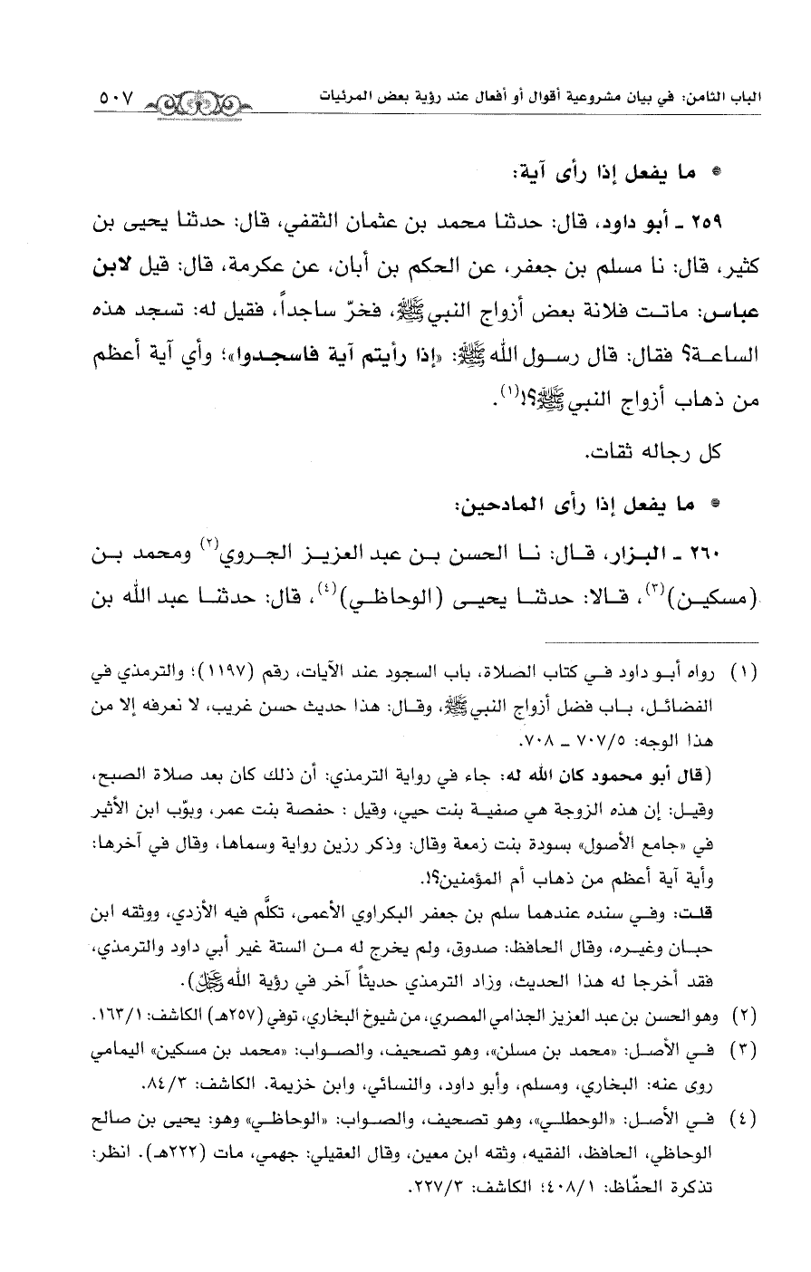 (¬1) رواه أبو داود في كتاب الصلاة، باب السجود عند الآيات، رقم (1197)؛ والترمذي في الفضائل، باب فضل أزواج النبي - صلى الله عليه وسلم -، وقال: هذأ حديث حسن غريب، لا نعرفه إلا من هذا الوجه: 5/ 707 - 708.