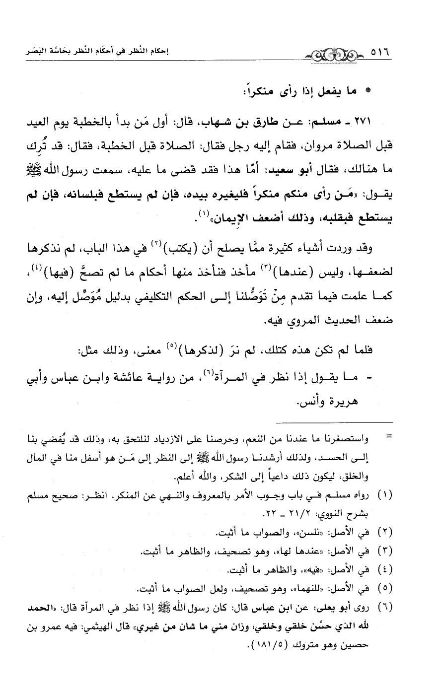 (¬1) رواه مسلم في باب وجوب الأمر بالمعروف والنهي عن المنكر. انظر: صحيح مسلم بشرح النووي: 2/ 21 - 22.