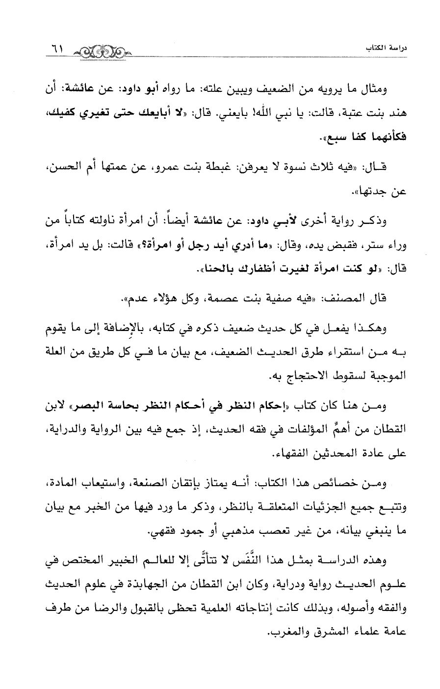 ومن هنا كان كتاب "إحكام النظر في أحكام التظر بحاسة البصر، لابن القطان من أهمِّ المؤلفات في فقه الحديث، إذ جمع فيه بين الرواية والدراية، على عادة المحدثين الفقهاء.