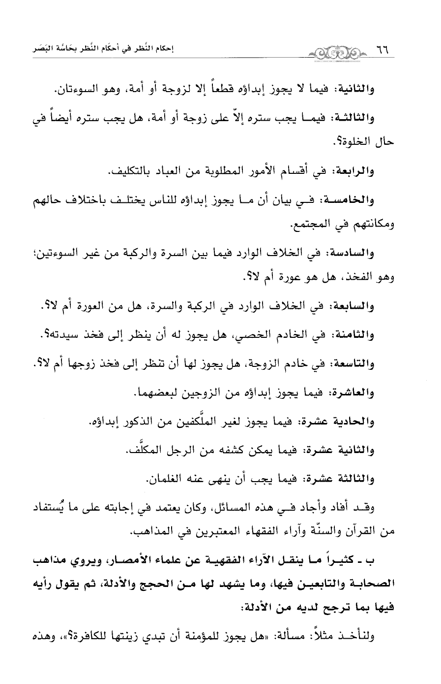والحادية عشرة: فيما يجوز لغير الملَّكفين من الذكور إبداؤه.