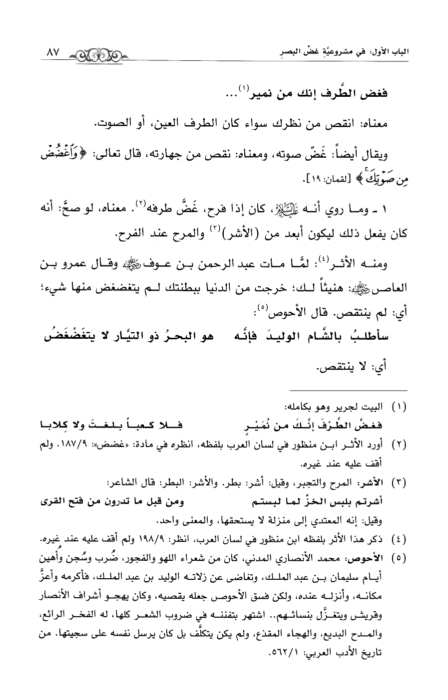 (¬2) أورد الأثر ابن منظور في لسان العرب بلفظه، انظره في مادة: "غضض": 9/ 187. ولم أقف عليه عند غيره.
