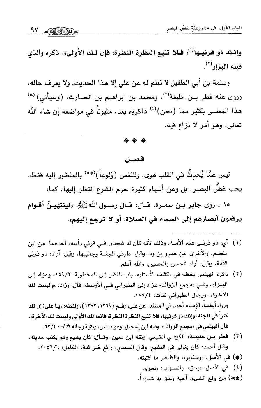ليس عمَّا يُحدِثُ في القلب هوى، وللنفس (وَلوعًا) (**) بالمنظور إليه فقط، يجب غضُّ البصر، بل وعن أشياء كثيرة حرم الشرع النظر إليها، كما: