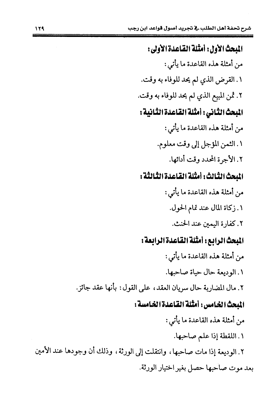 المبحث الخامس: أمثلة القاعدة الخامسة: