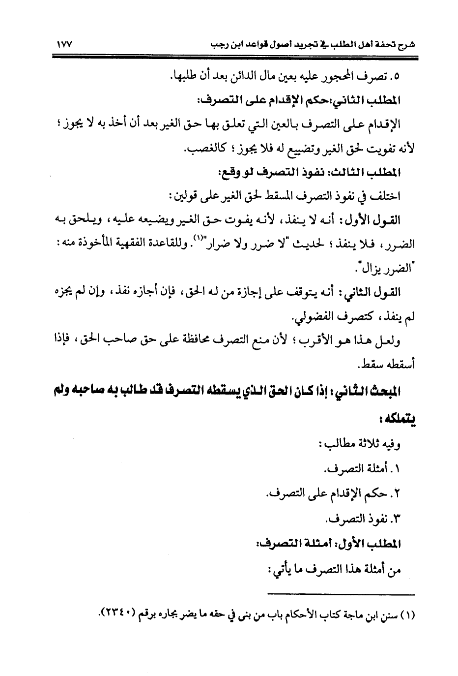 (¬1) سنن ابن ماجة كتاب الأحكام باب من بنى في حقه ما يضر بجاره برقم (2340).