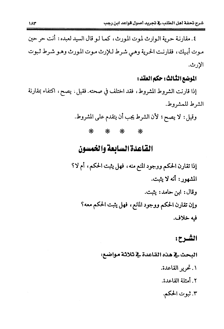 كتاب شرح تحفة أهل الطلب في تجريد أصول قواعد ابن رجب